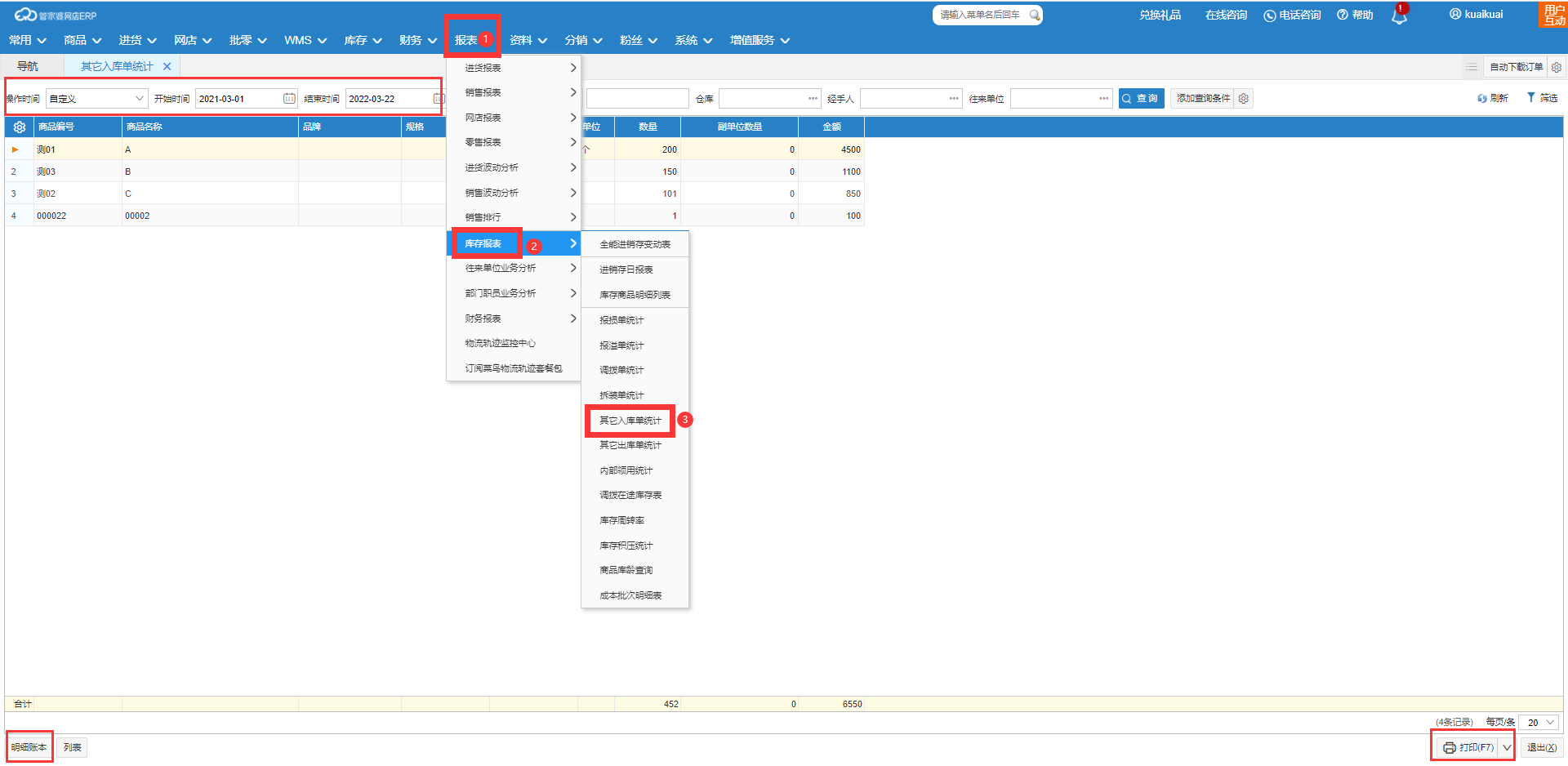 查询路径:【报表】—【库存报表】—【其他入库单统计】